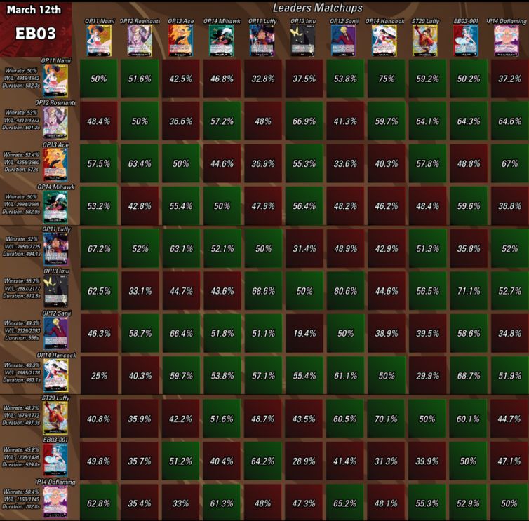 - Nami (OP11-041) – 50,0% / 9 891 meccs