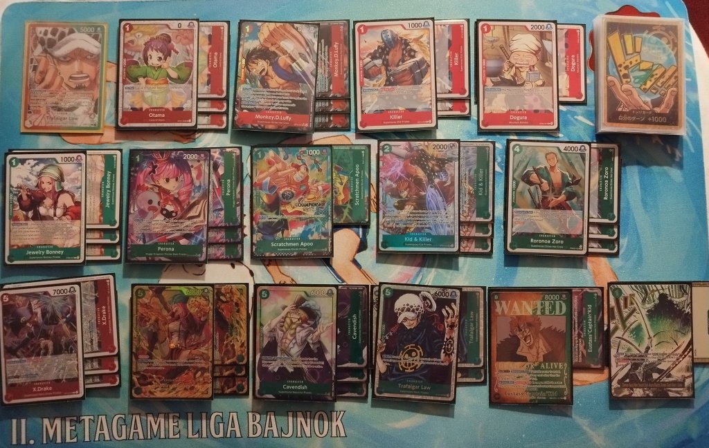 Így van, mielőtt visszatérő üstökösként feltűnt az RG Law a meta egén, én meg voltam győződve róla, hogy Rosinantézni fogok Bonnban. Láttam, hogy a Law úgy működget Japánban, kipróbáltam, nekem is egész jól ment vele. Sajnos ez már nagyon egy másik deck, mint amivel annó szerelembe estem, de az érzést sikerült előhozni, különösen, amikor bekerült az öreg Dogura, akit egy kivételével minden ellenfelem elolvasott Bonnban. Itt kezdődött a kellemes probléma, hogy hirtelen két erősen működőképesnek tűnő deck közül kellett választanom, ez is ellentétben volt ugye Zágrábbal, ahol nulla ilyenem volt még a verseny hetén is. Nagyon sokat forgattam mindkét decket, és úgy döntöttem végül, hogy egy őszinte metacall fogja eldönteni a kérdést. Egy héttel a regional előtt volt egy körülbelül 200 fős különleges Chinoize Cup, ami alapján arra jutottam, hogy túl sok a már említett kék deck a metában. Ezek ellen az RG Law mind jobb választás, mint a Rosinante, mert például a Sanji konkrétan epét hány a Vergo / X.Drake típusú lapoktól, csak a Rosiban 2 ilyen van meg 4 kereső, ami megtalálja, a Law-ban 4 ilyen lap és 16 kereső hozzá. Ez után alakult ki a végleges Law lista is, ekkor kerültek be a Dogurák, amelyek a viszonylag rossz matchupnak számító Rosinanték és Mihawkok ellen adtak egy kis erősítést. Azért különösen ott, mert az RG Law-t alapvetően mindenki előre akarja rakni ezen a két decken kívül, Dogurával pedig nagyon szépen lehet büntetni, ha engem rak páros curve-re azzal, hogy lehetségessé teszi a leader képességének használatát már 4 donon. Ez persze minden más ellen is hasznos, de ugye ott – ha az ellenfelemen múlik – nem is lesz 4 donos köröm. Természetesen hihetetlenül boldog vagyok, hogy a mai napig kedvencnek vallott paklimmal sikerült elérni egy ilyen átütő sikert, méltó búcsúja volt a decknek.