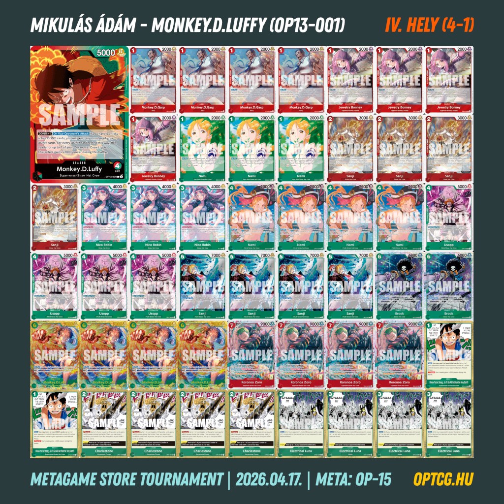 4. Mikulás Ádám (12) – Monkey.D.Luffy (OP13-001)