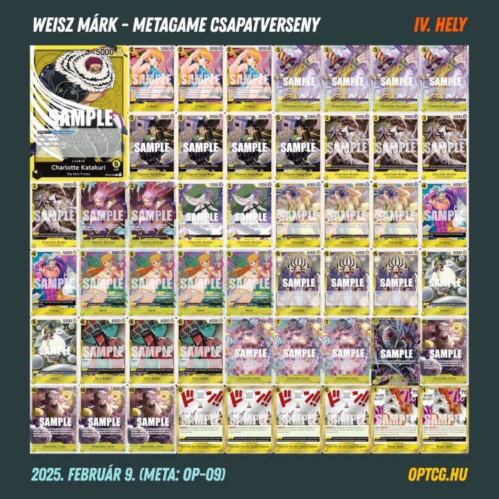 Charlotte Katakuri (OP03-099) decklisták PRB-02 meta OP-11 meta EB-02 meta 10.0 meta 9.0 meta 8.0 meta 7.5 meta 7.0 meta