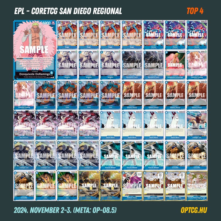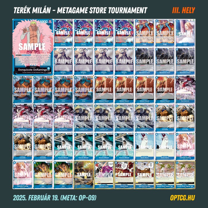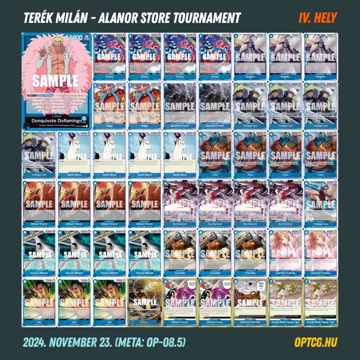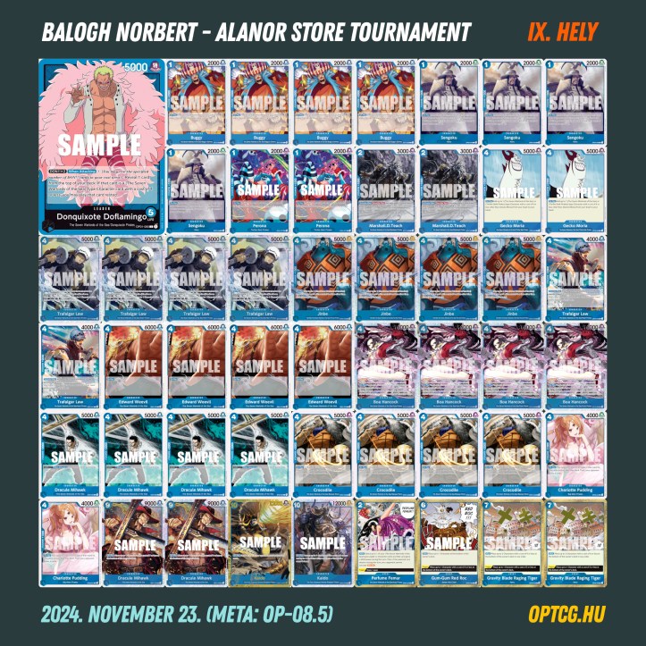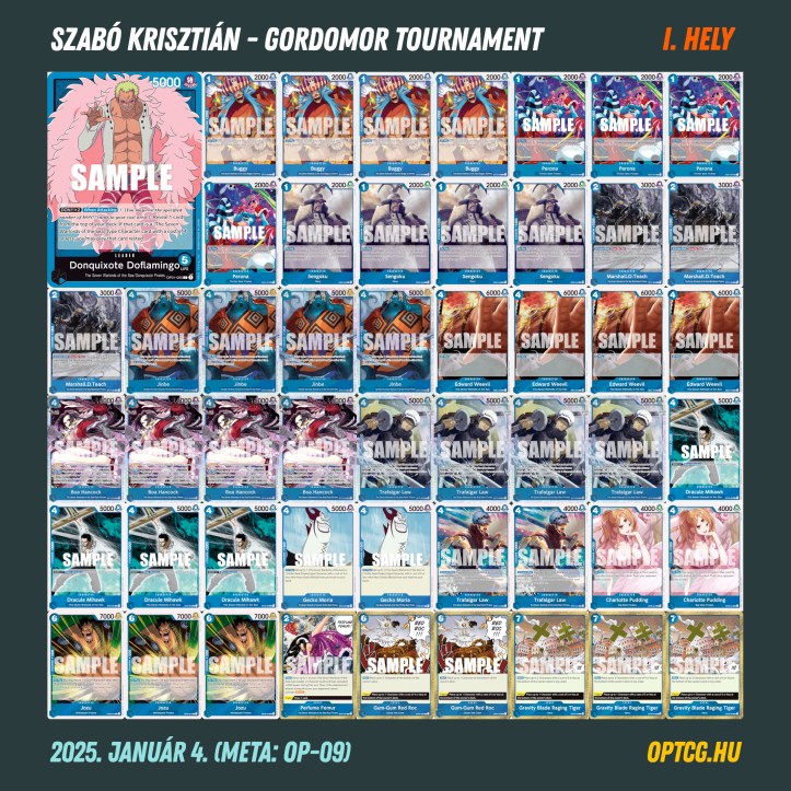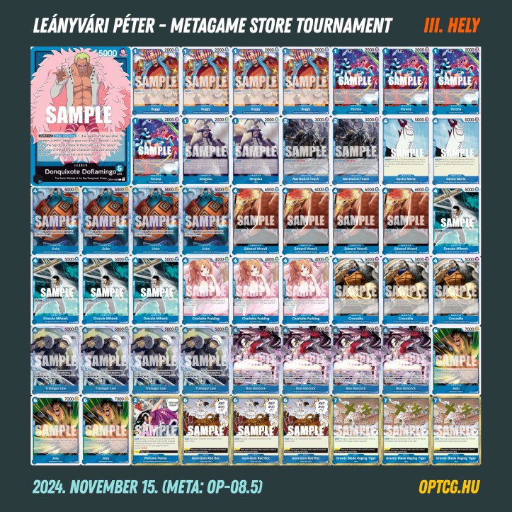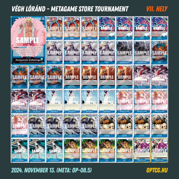 Donquixote Doflamingo (OP01-060) decklisták OP-13 meta PRB-02 meta 10.0 meta 9.0 meta 8.5 meta 8.0 meta 7.5 meta 7.0 meta