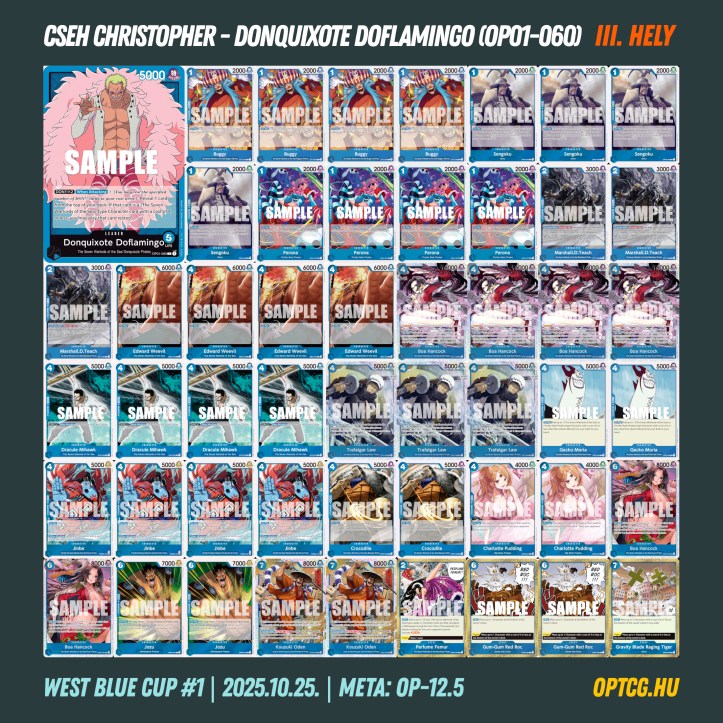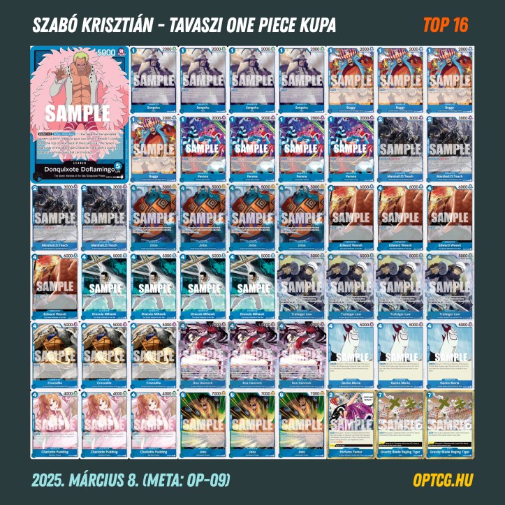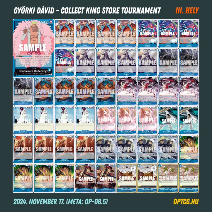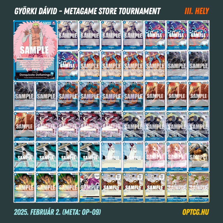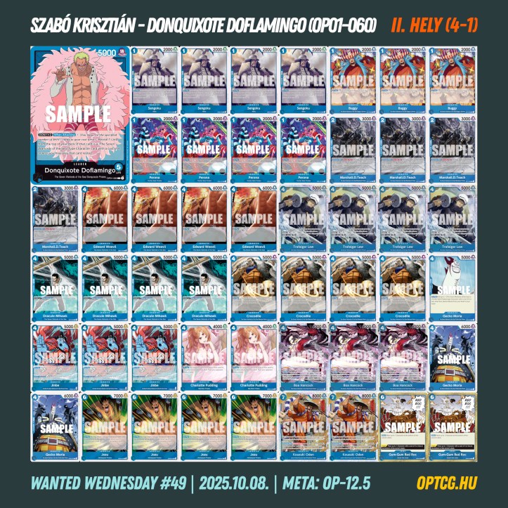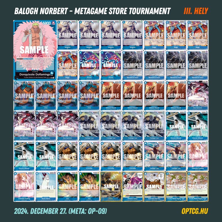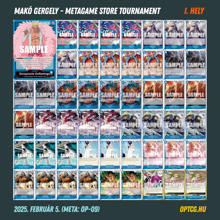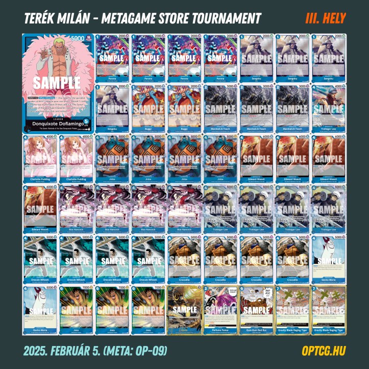 Donquixote Doflamingo (OP01-060) decklisták OP-13 meta PRB-02 meta 10.0 meta 9.0 meta 8.5 meta 8.0 meta 7.5 meta 7.0 meta