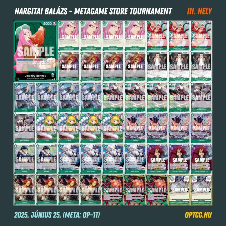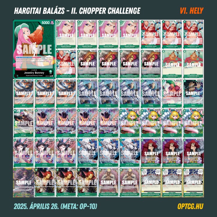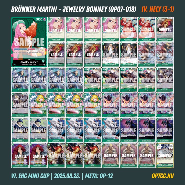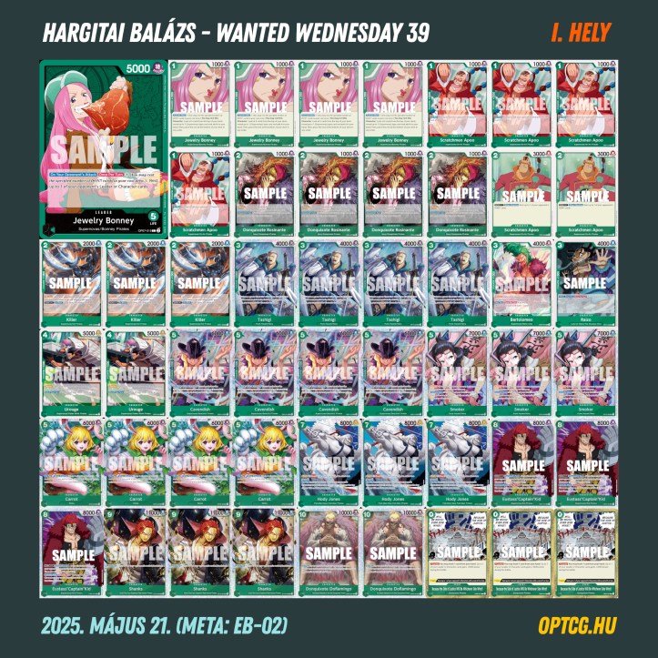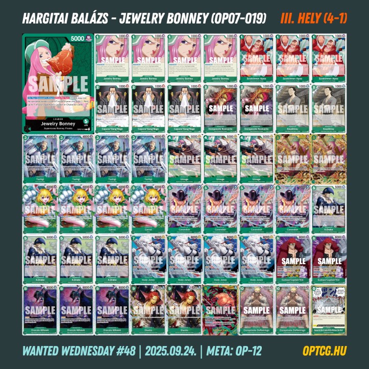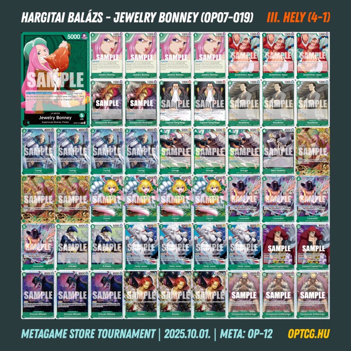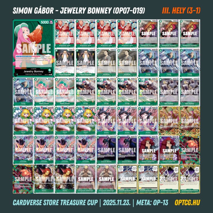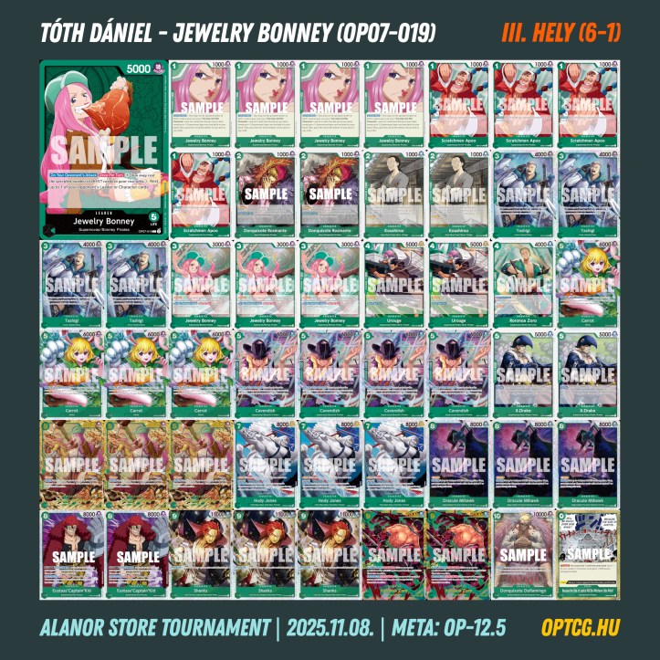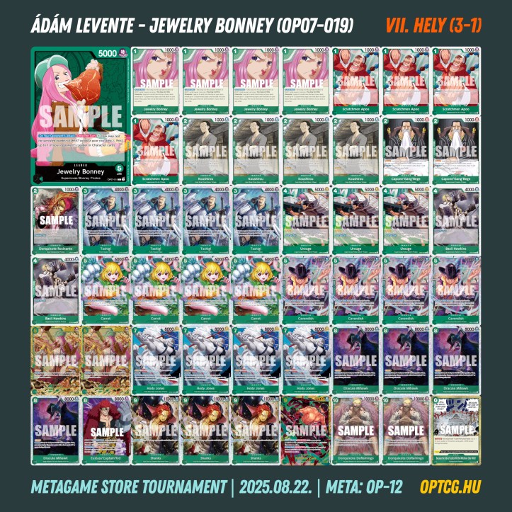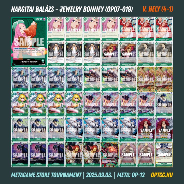 Jewelry Bonney (OP07-019) decklisták OP-13 meta PRB-02 meta OP-12 meta OP-11 meta EB-02 meta 10.0 meta 9.0 meta 8.5 meta 8.0 meta 7.5 meta 7.0 meta